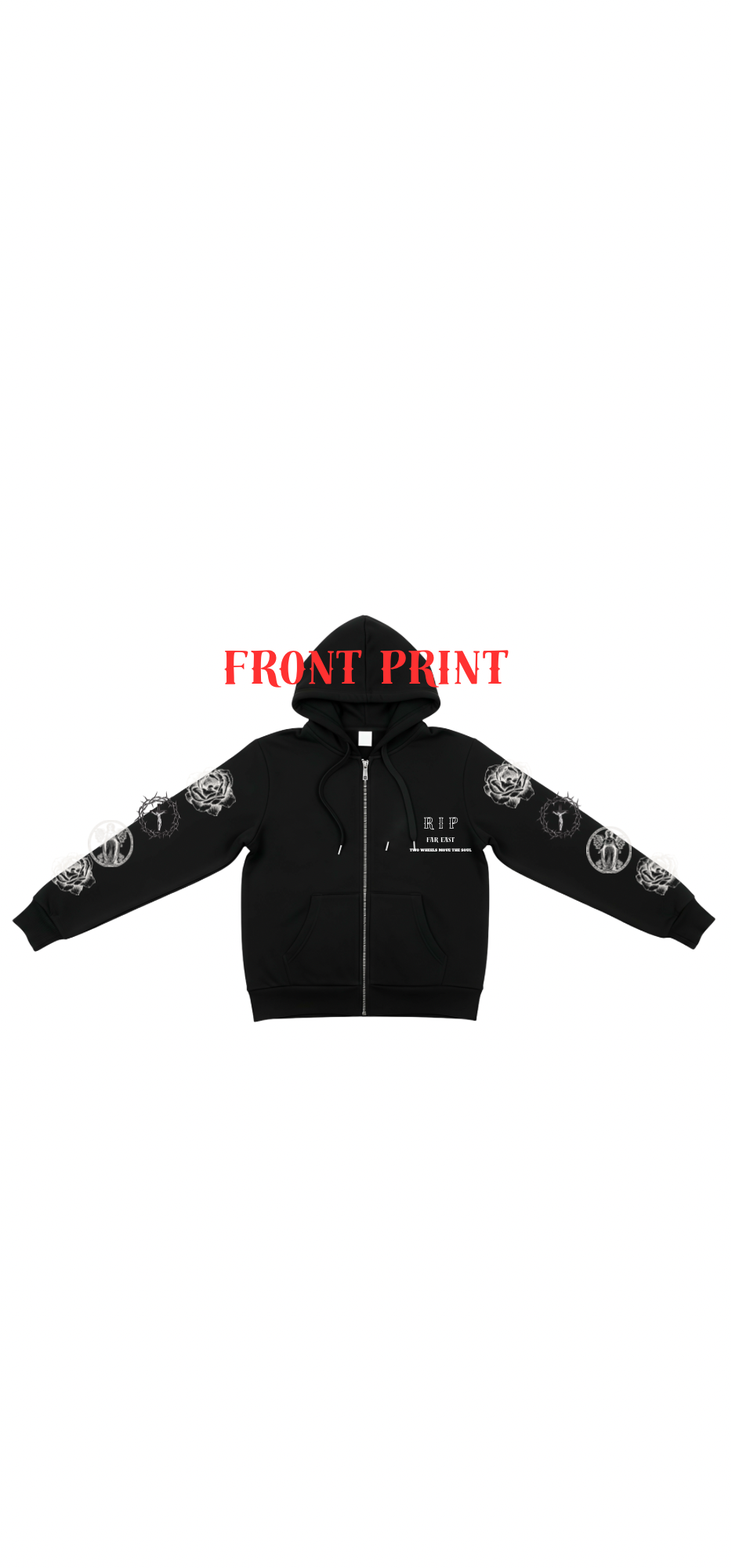ZIPUP HOOIE ジップパーカーをお手に取って、あなた自身のスタイルに新たな表現を加えてみませんか?信仰と自らの進む力を象徴するこのパーカーを通じて、あなたの個性をさらなる高みへと引き上げてください!